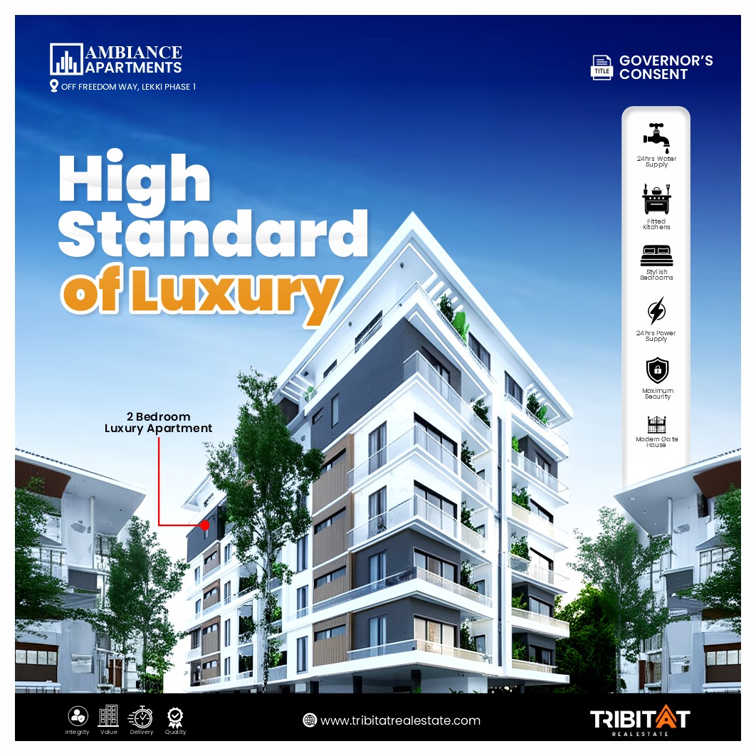 Ambiance Heights and Ambiance Apartment were built to set a new standard for luxury living. This premium luxurious residential estate is a perfect design for you and your family, be it that you are a first-time home buyer or an investor. The design, the location and the aesthetics make it not just an ideal place to live and raise a family, it is also a perfect investment platform with High demand for rental value with huge ROI and Shortlet investment! Ambiance Heights and Ambiance Apartment are Perfectly located off the Freedom way, Lekki Phase 1, Lekki Lagos